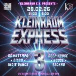 - SA 28.02.26 – KLEINRAUM EXPRESS 3Alle mal herhören: Der Kleinraum Express nimmt wieder Fahrt auf! Am 28.02., um 21 Uhr, entgleisen wir zum dritten Mal gemeinsam der Alltagsroutine! Wir verwandeln den Kulturbahnhof erneut in unsere eigene Galaxie aus Discolichtern, Groove und guter Laune. Die Reise-Infos: • Tickets: Wie immer bis 22:00 Uhr für nur 5€, danach für 10€. • Safe…